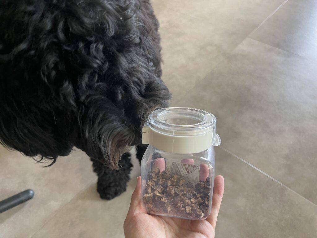 そんなおやつは、香りを逃がさず開け閉めしやすい保存容器に入れています👇
